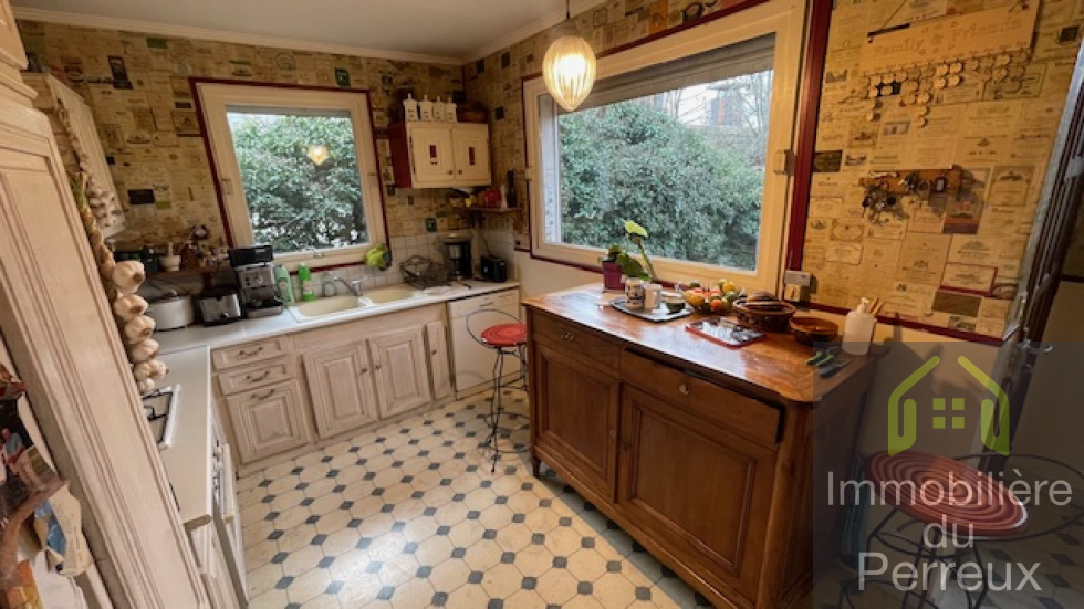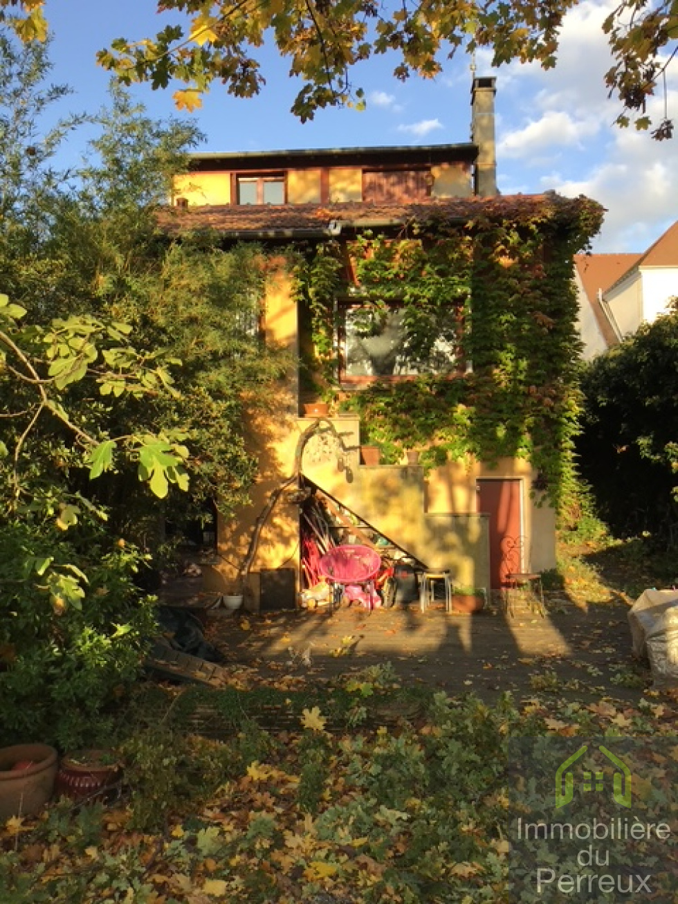 JOLIE MAISON INDEPENDANTE OFFRANT ENTREES, SEJOUR DOUBLE AVEC CHEMINEE BOIS, CUISINE AMENAGEE, 3 CHAMBRES, SDB, SALLE D'EAU/WC, WC IND. CUISINE D'ETE, BUREAU. DEPENDANCE AVEC KITCHENETTE, CHAMBRES, SD'EAU/WC. STATIONNEMENTS DE VOITURES POSSIBLE. UN COUP DE COEUR A SAISIR VITE. A DEUX PAS DU R.E.R E / SNCF, CENTRE. AU GRAND CALME.